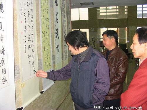本网讯(信息员王伟 报道)条幅草书挥洒飘逸,图轴上花鸟虫鱼栩栩如生……3月5日,人们纷纷驻足在县行政中心一楼大厅百米书画长廊前,津津有味地欣赏一幅幅书画精品。原来,我县庆“三八”妇女节书画大赛展正在这里举行。
