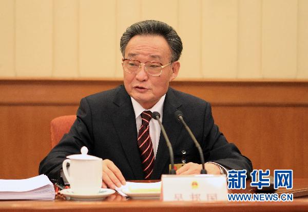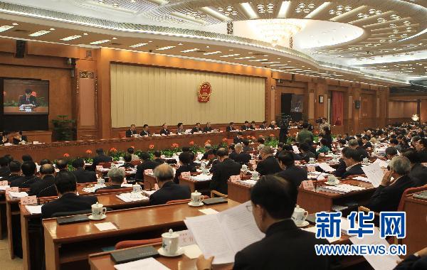 2月23日,十一届全国人大常委会第十九次会议在北京人民大会堂举行第一次全体会议。这次会议的重要任务是为即将举行的十一届全国人大四次会议做准备。吴邦国委员长主持会议。新华社记者樊如钧摄