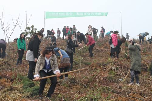 经过一个上午的劳动,几十亩荒山都披上了绿装。此次植树造林活动共栽种松柏3000余株。