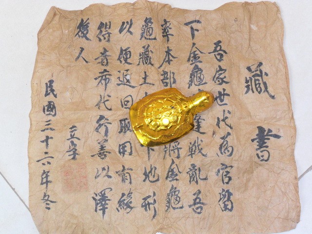 后来这件事被张老汉的老伴知道了,并且将此事告诉了邻居,就这样一传十,十传百,全村人都知道了。村民们都来围观,有人当着张老汉就提出,是不是真的金龟?张老汉也感到纳闷,为什么后来就没有挖出宝贝来呢?这只到手的金龟到底是不是真的呢?他带着种种怀疑来到了石羊派出所,于是出现了开头的一幕。经查,所谓的“金龟”其实是镀铜工艺品,根本不值什么钱。