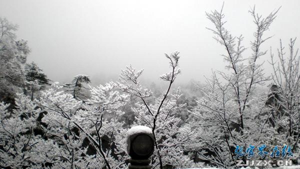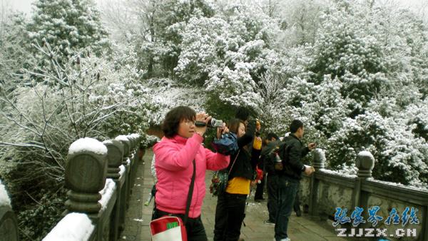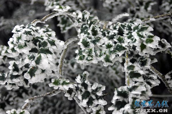 红网张家界3月15日讯(通讯员 张洪涛 吴勇兵)3月14日晚,在冷空气的“侵扰”下,世界自然遗产地——张家界武陵源风景区小雨淅沥,气温骤降。15日凌晨开始,核心景区内天子山、袁家界等海拔超过千米的景区飘起了雪花。经过数小时的积淀,山上部分地区积雪近五公分厚,武陵松等植被银装素裹,树枝、花草上还结满了冰挂。