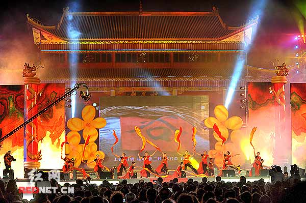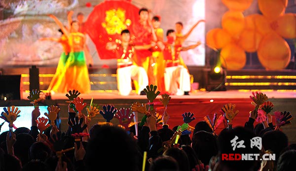 今晚的节目丰富多彩,晚会在中国汉胜艺术团舞蹈《神农鼓韵》中拉开了序幕,紧接着,湘妹子滕婷和贾双辉合唱《中国喜洋洋》。此后,既有女声独唱《又唱浏阳河》,又有杂技表演《力量》,也有本地特色十足的《抖辣椒舞》,还有红叶组合表演的《踏歌起舞》、《簸箕上的麻雀》和青年歌唱家刘一祯独唱的《幸福年》……晚会最后在大型歌舞《盛世安仁》中落下帷幕。 [page]