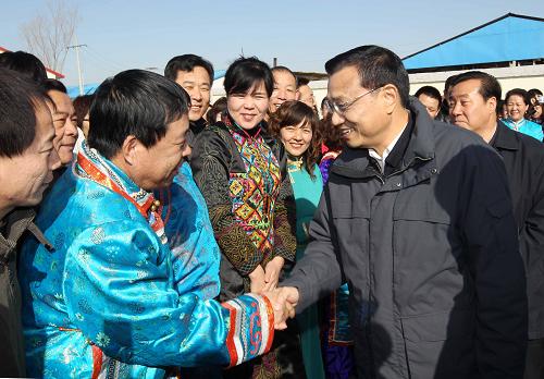 3月21日至22日,中共中央政治局常委、国务院副总理李克强在内蒙古自治区考察。这是3月22日,李克强来到呼和浩特市南郊的金河镇舍必崖村奶牛养殖小区综合服务站,看望各族职工和村民。新华社记者刘卫兵摄