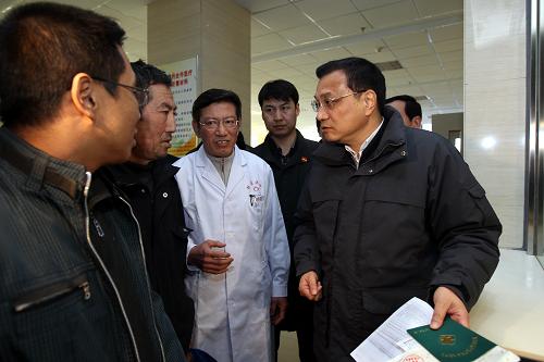 3月21日至22日,中共中央政治局常委、国务院副总理李克强在内蒙古自治区考察。这是3月22日,李克强来到呼和浩特市托克托县医院,看望并慰问就医群众和医务人员,了解医院改革发展情况。新华社记者刘卫兵摄
