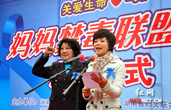 湖南省禁毒形象大使、妈妈禁毒联盟明星代表仇晓和雨花区妈妈禁毒联盟代表共同向全省妈妈发出倡议,加入爱心禁毒行列。