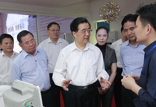 发展创意产业,是海南转方式、调结构的一个亮点。胡锦涛特意考察了刚开园不久的海南国际创意港。展品大厅里,既节电又安全的无叶片电扇,便于携带的太阳能照明灯,用于地震救援的盲区探测器,可直接将设计“打印”成样品的快速成型设备,体现立体种植模式的垂直农场模型……琳琅满目的创意设计方案和产品吸引了总书记的目光。胡锦涛饶有兴致地听取介绍、观看演示,夸奖这些设计富有想像力,并了解这些创意的应用前景。