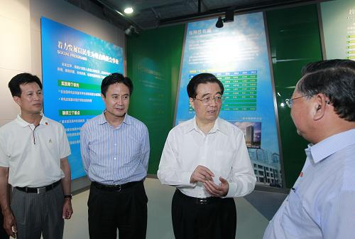 这是4月16日,胡锦涛在海南省规划展览馆了解海南国际旅游岛规划和建设情况。新华社记者鞠鹏摄