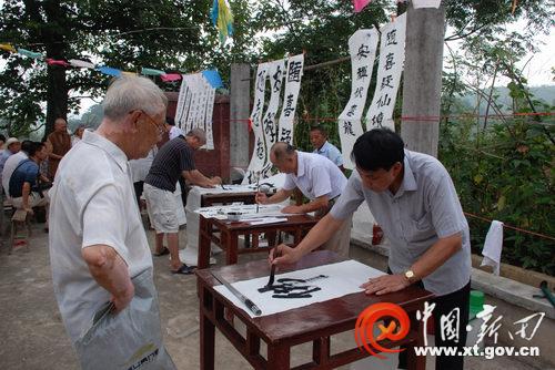 新田网讯(唐人杰 报道) 7月19日,秀峰诗社与玉峰寺在玉峰寺内联合举办书法笔会,精选作品用于制作玉峰寺山门联和碑联。
