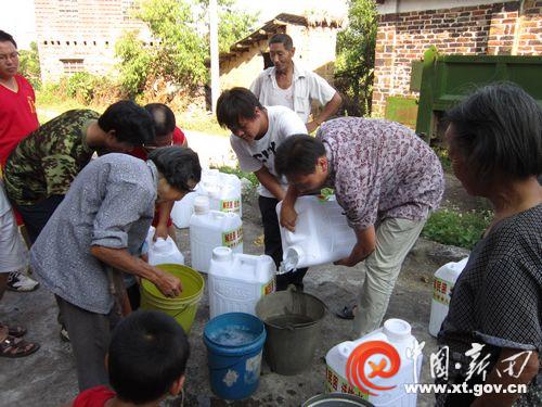 为解决该村人民群众的燃眉之急,十字乡党委政府已经组成送水突击队,组织运水车两台、运装水桶50余个给该乡黄斗坡行政村送水,并嘱咐村“两委”要组织好群众,搞好生产自救,抗旱救灾中特别要解决老弱病残人饮水问题,全力帮助受灾群众渡过难关。送水现场,群众兴高采烈,感谢党委政府在危难时刻没有忘记他们,表示一定会在乡党委、政府的领导下,共抗旱魔争取全面取得抗旱救灾的胜利。
