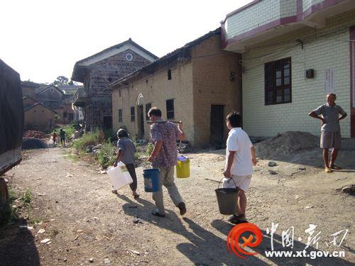 黄斗坡行政村共有6个自然村,10个村民小组,居住在大冠岭一带,由于地势较高,自然条件恶劣,吃水基本是靠山塘水库积水,以及雨天屋顶上流下来的雨水。受持续高温干旱的影响,该村饮水池、堰塘等周边水源都已经干涸,塘底的泥土已经全部干裂,出现了严重的人畜饮水困难。