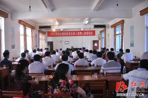 为了加强中小学校干部队伍的管理建设,进一步深化中小学校人事制度改革,拓宽选人用人渠道,促进德才兼备、业绩突出、群众拥护的优秀人才脱颖而出,实行能上能下、优胜劣汰、择优选能的用人机制,建设一支高素质的管理干部队伍,同时为了建立结构优化、办事高效、运转协调、行为规范的机关人事管理体系,该局举行了这次竞聘上岗现场会。竞聘上岗工作坚持党管干部原则,坚持德才兼备原则,坚持公平、公开、公正、竞争、择优原则,严格竞聘程序和竞聘纪律,通过自荐报名、资格审查、竞聘演说、组织考核、公布成绩和拟定任职人选等步骤,选出工作能力强、工作水平高、工作作风硬、道德品质和政治素质好的人。本次竞聘共提供小学校长职位2个、中学校长职位3个、教育局审计股股长职位1个,来自全县中小学校和教育局机关的32名报名者参加了竞聘。