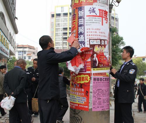 工作人员正在清理城市“牛皮癣”