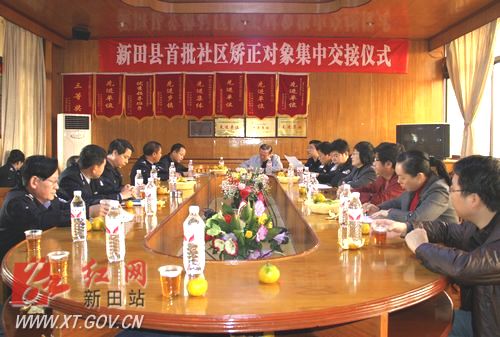 新田网(贺华建 报道)10月25日,新田县首批社区矫正对象在龙泉镇政府三楼会议室顺利交接,标志着新田县社区矫正工作正式进入了实施管理阶段。新田县政法委、司法局、法院、检察院、公安局、龙泉镇以及城区派出所等相关部门负责人以及6名首批社区矫正对象代表参加了交接仪式。