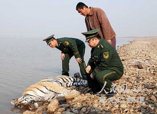 黑龙江密山发现疑似成年野生东北虎尸体(图)