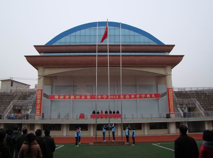 中国新田网(通讯员彭利林)2月8日上午,迎着和煦的春风,带着对新学期的期盼,县一中全校师生在校田径运动场举行了隆重的2012年春季开学典礼。