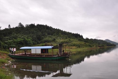 金陵湖位于新田北部山区,是上世纪中叶修建的一个中型水库,总库容3800万立方米。由于近年来新田注重生态环境的保护,大力开展植树造林,使金陵湖周边环境日益优化。四面青山环绕,湖面碧波荡漾,湖水清澈洁净,空气清新怡人,游人逐渐增多。金陵山庄的陈老板透露,今年雨水均匀,金陵湖蓄水现已超过3000万立方米,湖面气势已经出来,因此几乎每天都有一两拨人来此游玩,除了本县市民,不少桂阳、郴州的游客也慕名前来。但眼下还不是旅游旺季,盛夏和初秋游人更多。