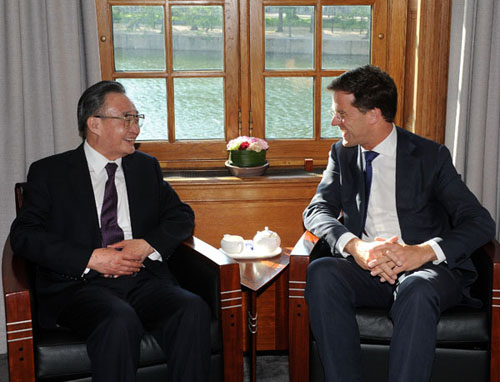 吕特表示,对华关系是荷兰外交政策的重点,荷方坚持一个中国原则并以此作为对华政策的基石,愿在平等和相互尊重的基础上积极发展荷中关系,全面推动经贸、人文、环境等领域交流合作,特别是农业、高科技、新能源等方面的合作,反对和抵制各种形式的贸易保护主义,扩大相互投资,深化人文交流,欢迎更多中国企业到荷兰投资,欢迎更多中国游客来荷旅游观光。