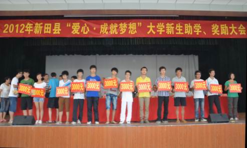 中国新田网(记者 王玉洁)十年树木,百年树人。8月20日,我县 “爱心•成就梦想”大学新生助学、奖励大会在县一中隆重举行。当天,来自全县的77名贫困大学新生、14名农村两女结扎户及部份独生子女户大学新生分别获得3000元或5000元的扶助金或奖励。