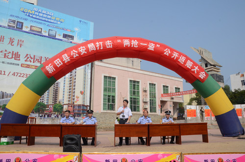 县委常委、政法委书记龙军到场指导,他在讲话中指出,打击刑事犯罪是一项长期而艰巨的任务,县公安机关和全体公安民警要进一步增强忧患意识和责任意识,继续保持对盗抢侵财型犯罪进行严厉打击的高压态势,切实关注民生,让百姓安居乐业。