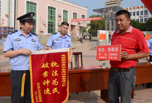 返赃大会现场,部分被抢盗物品追回的群众为公安民警送上了锦旗,表达了自己的谢意。