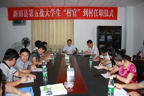 仪式上,县委组织相关负责人宣读了《新田县第五批大学生“村官”任职安排方案》,第五批大学生“村官”做了自我介绍和履职感言,相关乡镇党委书记代表就大学生“村官”接收管理工作作了表态性发言。