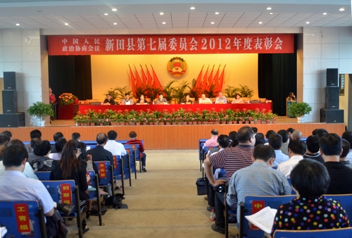 中国新田网(记者 贺华建)9月22日下午,县政协第七届委员会召开2012年度先进表彰大会,对3个先进工作组、32名优秀委员、5个政协提案办理单位、8名政协提案办理先进个人以及14篇优秀提案、7篇优秀调研材料进行了表彰和奖励。