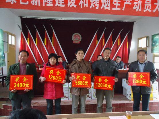 会上,新隆镇镇长唐治勇就当前绿化造林和烤烟生产工作进行了全面安排部署。烟草站分析了烤烟生产面临的新形势、新机遇。各村递交了“绿色新隆”建设工作责任书。对2012年烤烟生产种植大户进行了表彰。共发放奖金23900元,发放奖品23份,发放纪念品135余份。通过烤烟生产优惠扶持政策落实到位,表明了该镇党委、政府大力扶持烤烟生产、扶持烟农的决心,充分调动镇村干部和广大烟农抓烟种烟的积极性,对全镇的烤烟发展将起到积极的促进作用。