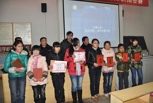 为进一步教育学生关爱生命、拒绝违章,自觉参与道路交通管理,提高学生的防范能力和应变突发交通事故的能力,切实预防和减少道路交通事故的发生,确保学生人身安全,县交警大队联合瑞华实验学校、龙泉驾校举办了这次活动。在活动承办中,龙泉驾校为获奖者提供了丰厚的奖品;瑞华实验学校注重活动的普及性,在全校开展了选拔赛,18名学生脱颖而出,按年级组合成6个代表队参加抢答赛。抢答赛内容全部为交通安全常识和交通法律法规知识,须经过必答题、抢答题和风险题等3轮比试。为了营造气氛、赛出水平,该校还组织啦啦队为参赛选手鼓劲助威,现场气氛非常活跃。各代表队参赛选手利用平时掌握的知识,展开激烈角逐,最终1号代表队以180分的成绩荣获抢答赛一等奖,其他代表队分获二等奖和三等奖。