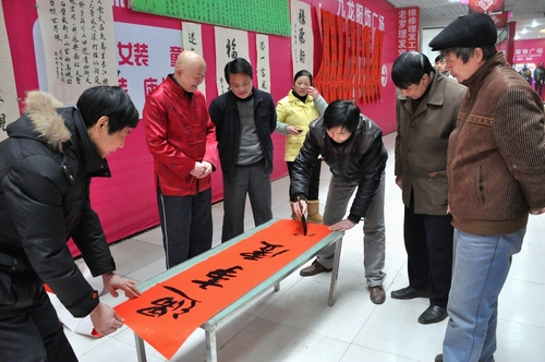 罗芳佑今年50岁,是新田县龙泉镇瑶塘窝村人,从小酷爱书法,早期主要临摹晋代书法大家王羲之、王献之作品,后模仿当代书法名家卢定山书法,多年来临池不辍,颇有心得,尤善行书,其书法作品多次在市、县参展并获奖,其对联作品很受群众欢迎。罗芳佑平时为人理发,一有空闲便研习书法,人送外号“剃头匠书法家”。他很乐意接受这个外号,因为它把自己的职业和爱好都概括其中了。