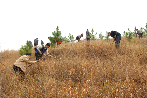中国新田网:1月19日上午,阳光明媚,党旗飘扬。县职业中专全体党员及入党积极分子共30余人来到了位于毛里乡石古湾村的植树造林责任点参加造林管护劳动。党员们挥舞着手中的镰刀和锄头小心翼翼的为树苗除草、松土,一株株茁壮成长的树苗经过党员们的精心管护,显得更加生机勃勃。两年来,县职业中专在该植树造林责任点共栽下树苗2000余株,原先杂草重生的荒山披上了,变得绿意盎然起来。