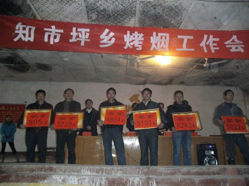 中国新田网(通讯员 李巧艳) 1月26日,知市坪乡召开2013年烤烟工作推进暨2012年烤烟表彰大会。全体乡村干部、农技员及烤烟种植户共计300余人参加了会议。 会上,乡党委、政府主要领导分别就全乡2012年烤烟生产进行了总结回顾,并就2013年烤烟生产有关工作进行了安排和部署。会议指出,2012年,知市坪乡紧紧围绕烤烟生产的工作目标任务,强化工作措施,努力克服了重重困难,烤烟生产取得了显著成效。全乡烤烟面积近4000亩,交售烟叶1万担,完成了县委、县政府下达的任务。会议对冷水塘、板溪等5个烤烟工作先进集体进行了表彰,对5个种植烤烟100亩以上交售烟叶300担以上的烤烟种植大户颁发了特别贡献奖,对11名烤烟大户颁发了突出贡献奖。对村兑现和奖励达20余万元。会上,乡党委、政府还与各村签订了2013年烤烟生产目标责任书。2013年,知市坪乡计划种植烤烟4500亩,实现烟叶收购1.2万担。知市坪乡党委、政府将以坚定的信心,饱满的热情,积极工作,扎实推进,实现该乡烤烟产业更大规模、更高质量、更好效益地跨越式发展。