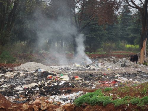 中国新田网讯:3月15日,创卫办接到热线举报:方达工业园内有人焚烧垃圾工作人员闻讯赶到,只见方达工业园内双鑫鞋厂厂区后面的空地上到处都是白色垃圾、建筑垃圾、生活垃圾,让人触目惊心。其中有两堆垃圾正被堆放在绿化树下焚烧,烟雾燎绕,恶臭熏天,产生的火焰和烟雾危及绿化树,致使两棵绿化树树叶被熏黄,树墩部分树皮被烧焦。工作人员仔细检查,发现焚烧的垃圾是生产废弃的边角废料,有塑料、废鞋、废纸。