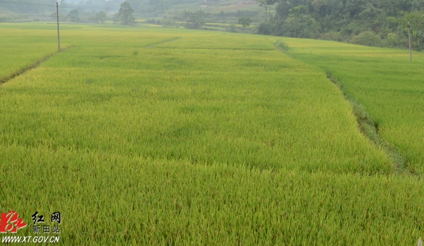 中国新田网(记者 贺华建)8月21日,骥村镇砠坪村有机水稻基地像一片金色的海洋,近300亩黄澄澄的稻谷颗粒饱满,一派丰收在望的景象,预计9月全面收割。