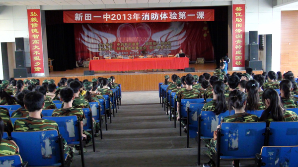 中国新田网(通讯员:徐声军) 安全第一,责任至上,消防安全教育是新田一中安全教育的重要组成部分。8月22日上午,在该校食堂三楼会议宝举行“2013级高一新生消防体验第一课”,县消防大队负责人面向近800余名师生举办了一次全面的消防知识培训,给高一新生上了一堂“消防体验第一课”。