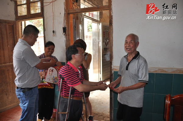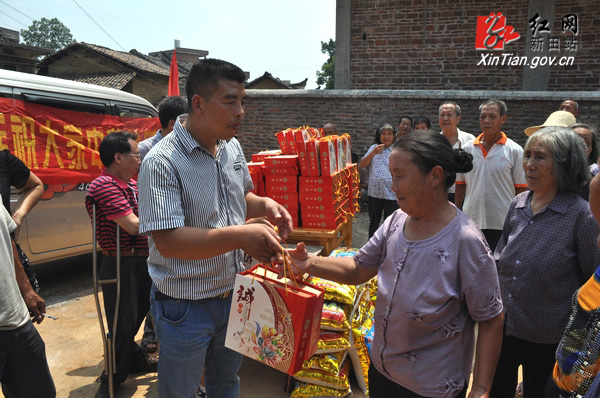 新田新闻网讯(记者 唐人杰) 一年一度的中秋佳节即将来临,9月14日,“皇冠蛋糕爱心服务队”到十字乡大塘背村开展“迎中秋、献爱心”活动,为该村75名老人、孤儿、残疾人和特困村民送去月饼、大米和慰问金,也送去中秋节的美好祝福。