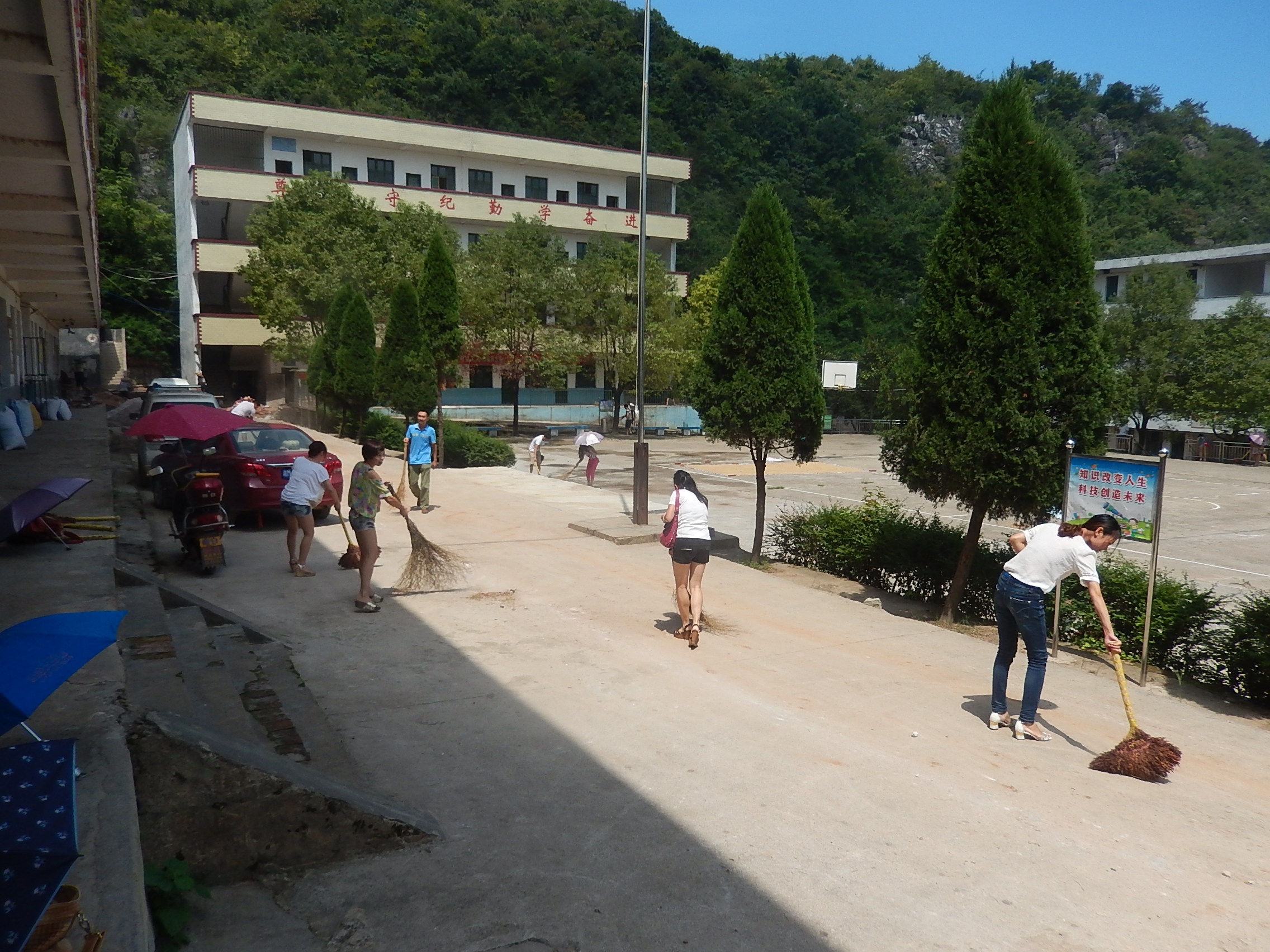 2014年8月30日,三井学校全体教职员工在校长宋柏富的带领下,拿着卫生工具,冒着烈日将学校内卫生来了个彻底的大扫除,用实际行动欢迎新生的到来。