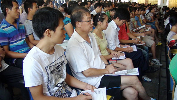开坛仪式结束后,该校各学科的教研组长带着一、二中的教师到该校不同的地点听自己所教学科专家的讲座。