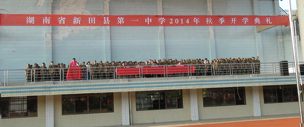 新田新闻网(通讯员:徐声军)金秋时节,迎着秋风,沐浴着金秋的朝阳,激荡起跳动的心房。在清爽的季节里,在和谐的气氛中,9月1日早上7:30点,新田一中全体师生齐聚该校运动场,隆重举行2014年秋季开学典礼,共同翻开新学年崭新的第一页。 典礼上表彰了该校2013-2014学年度三好学生、优秀学生干部决定和名单,新进教师代表、高一新生代表分别作了发言,学生代表宣读“不携带手机进校园倡议”。