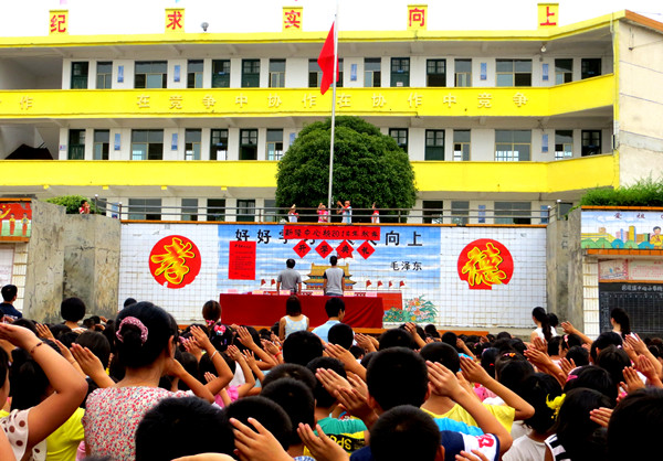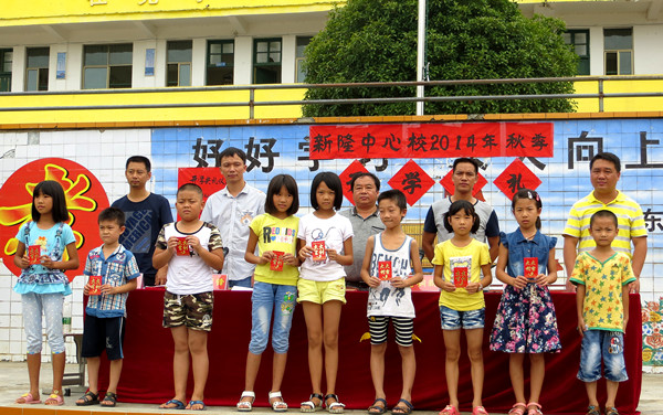 新隆中心校1000多名师生面对鲜艳的五星红旗,接受了新学期第一次爱国主义洗礼。典礼上,该校校长向全体同学发表新学期寄语,要求同学们努力养成良好的学习习惯、寻找学习的乐趣,学得轻松、学得愉快、学有所成,健康快乐地成长。副校长代表学校欢迎新生一年级的小朋友的入学,希望他们尽快适应学校生活,逐步走向正规,融入“大家庭”。为勉励同学们在新的起跑线上,策马扬鞭学习、思想双丰收,该校对上学期取得突出成绩和进步的30名同学进行了表彰。
