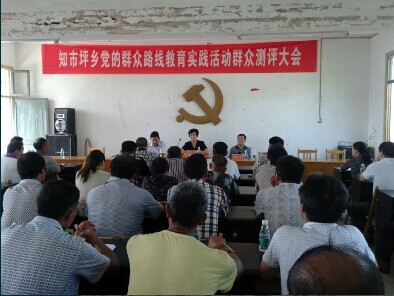 9月26日上午11时,知市坪乡召开了乡党的群众路线教育实践活动群众测评大会。市委第11督导组组长盘玉花,县委派驻乡镇第五督导组组长陈金国等到会指导。