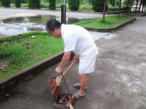 假日,学生都回家了,住校的老师寥寥无几,学校留下了卫生“空档”。为了校园的干净和美观,谢诗荣老师每每自觉清扫垃圾、树叶。