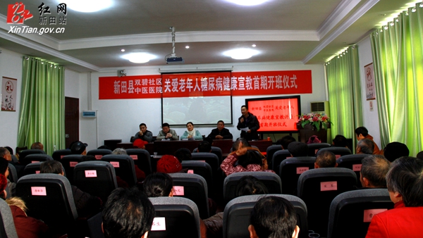 红网新田站(分站记者 贺华建)12月23日下午,由双碧社区、县中医院联合举办的关爱老年人糖尿病健康首期宣教讲座在县中医院开班,100余名社区居民聆听讲座。
