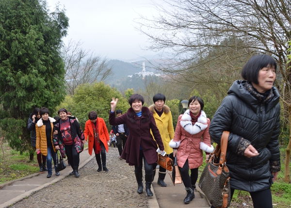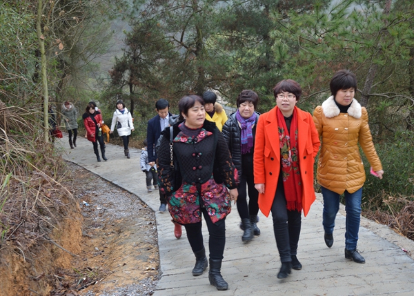上午九时许,女同胞们沿着蜿蜒曲折的山路拾阶而上,一路欢歌笑语,尽情地感受桃花李花的娇艳、小草新芽的芬芳以及细雨滋润的清新。大家心里由衷地感到:近年来新田县委、县政府倾力打造“绿色新田、生态新田”,使新田的山更绿了,水更清了。姐妹还不时弯腰拾起路边、山坡上的白色垃圾放进垃圾桶里。