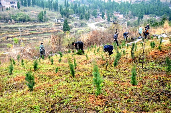 当天下午,在70余名干群的辛勤劳动下,共种植柏树幼苗3600余株,种植面积20余亩,一排排树木昂首挺立,一丛丛新绿荡漾春意。