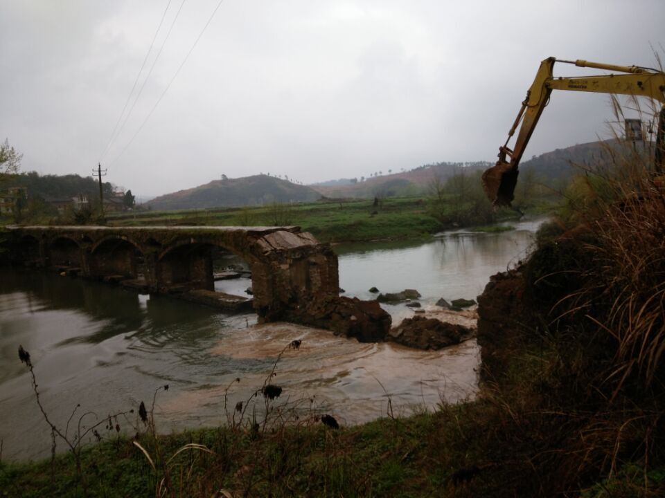 陶宝旧桥始建于上世纪的60年代,是一座长约50米、宽2.5米、5跨的混凝土拱桥,经过50多年的运行和风吹雨打,这座桥已经步入了风烛残年,第一跨的拱圈拱顶开裂,多处腹拱的拱圈石开始脱落。为了消除安全隐患,2014年,县交通局、安监局、龙泉镇立即联合启动了陶宝危桥改造项目,在老桥上游100米处新建了一座长约90米,宽9.2米的钢筋混泥土拱桥。由于当地老百姓的恋旧情节和生活习惯,认为老陶宝桥过路比较熟悉方便,而且从未发生过安全事故,拆除陶宝桥是一大损失。为了做通老百姓的工作,交通局相关负责人与龙泉镇驻陶宝村干部对老桥存在的安全隐患为老百姓给予耐心解释,征得群众的意见后,大家一致同意拆除,及时消除了五类危桥的安全隐患,确保了陶宝群众的生命财产安全。