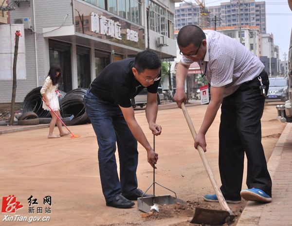 县委副书记荀志坚在龙泉路南段清扫