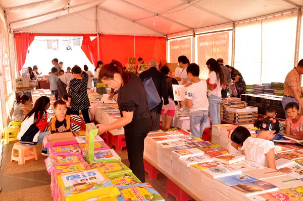 新田新闻网(实习记者 汤程安)倡导全民阅读,打造书香新田。7月8日,我县为期11天的精品、正品图书普及惠民巡展活动在县文体中心广场如期启动,此次活动主要普及的书种有儿童、政务、商务、文学史四大类。全场所有正版精品图书2折起,吸引了无数读书爱好者前往购买。