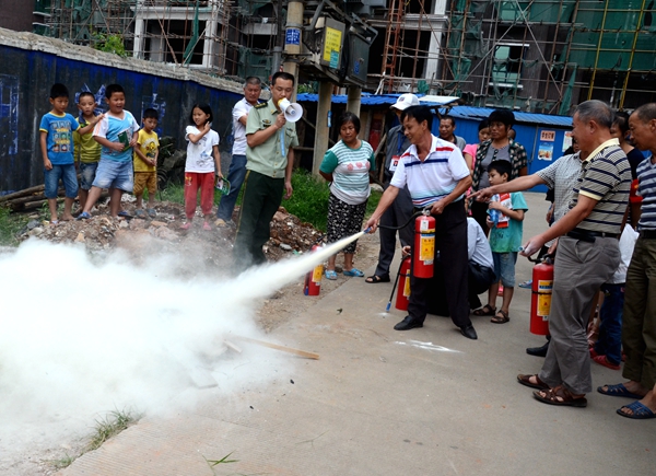 消防员对近期全国各地发生的重大火灾情况作了简单的介绍,以提高居民的防火意识。通过一个个真实的案例,深入浅出地讲述了火灾的发生、发展和后果,并详细讲解了家庭防火常识、火灾中如何自救逃生等知识。启示居民群众要正确报火警、用火、用电、用气、燃放烟花爆竹等,消除家庭安全隐患。并在现场演示了干粉灭火器的使用方法,使消防工作真正深入社区、深入人心。