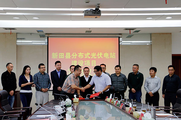 新田新闻网(记者:钟伟锋)10月9日,“新田县分布式光伏电站建设项目”签约仪式在行政中心举行,新田县人民政府与湖南中技环保能源股份有限公司成功签订合作协议,项目总投资27亿元。