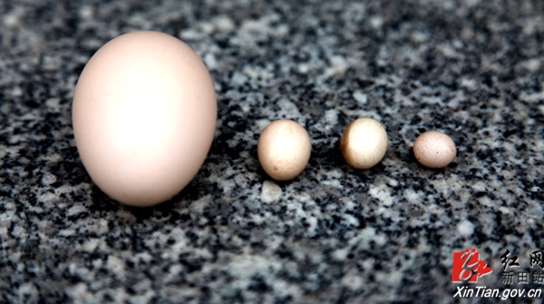 黄女士介绍,11月25日,自己照常向老买家进了10余只土鸡留餐厅备用,每只土鸡2斤多重,饲养在餐厨后,没过两天个别母鸡开始产蛋,令人费解的是,其中一只母鸡下的蛋个头小得离谱,而且连续3天如此,每个长只约1.5厘米左右,其中最小的仅花生米粒大,直径大约1.2厘米了不得。
